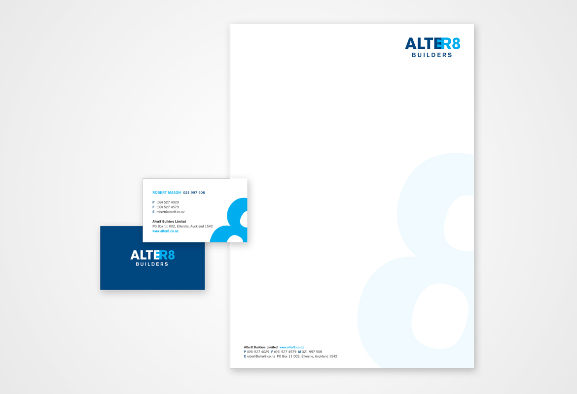 Alter8 Builders, a home building and renovation company required a new brand which reflected old world craftsmanship with a modern feel. They are true, old-world craftsmen and we wanted to reflect this quality in the logo. The dovetail joint in the logo is a metaphor for accuracy, quality and attention to detail. We also design and printed their business card and letterhead.
