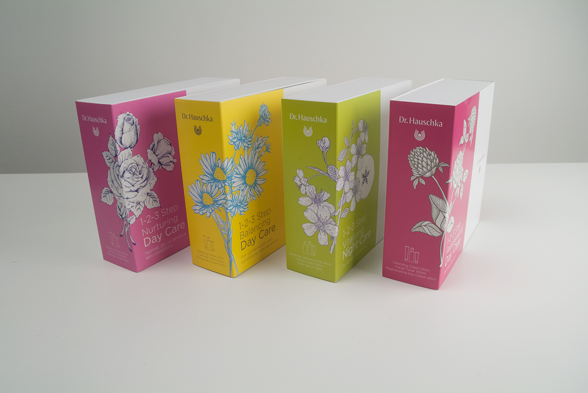 Dr. Hauschka is a leading brand of European natural skincare products. Their 3-product box sets make wonderful gifts but the packaging was dull and in need of a revamp.
