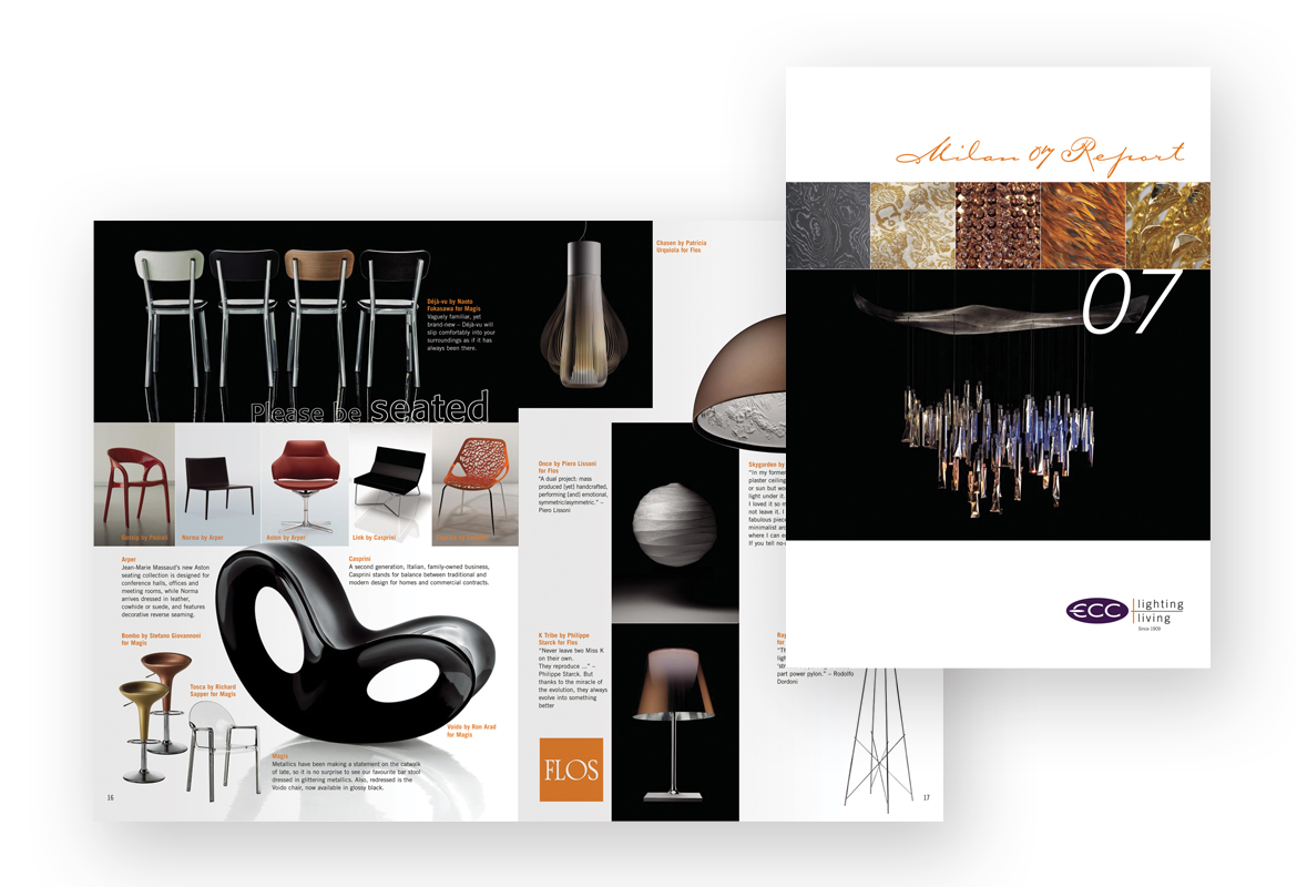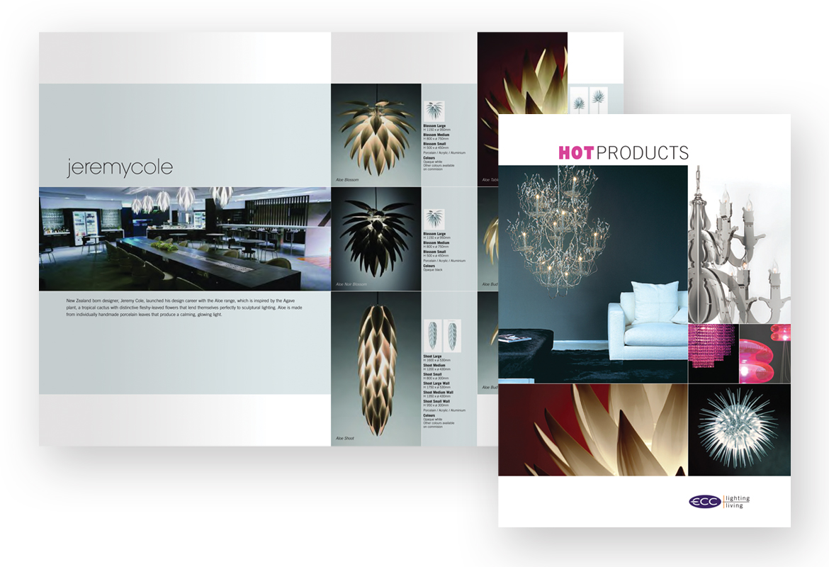ECC Lighting & Living provide the finest in design and quality lighting and home products, exclusively representing some of the world’s leading lighting and furniture designers. This catalogue was designed to showcase their products.