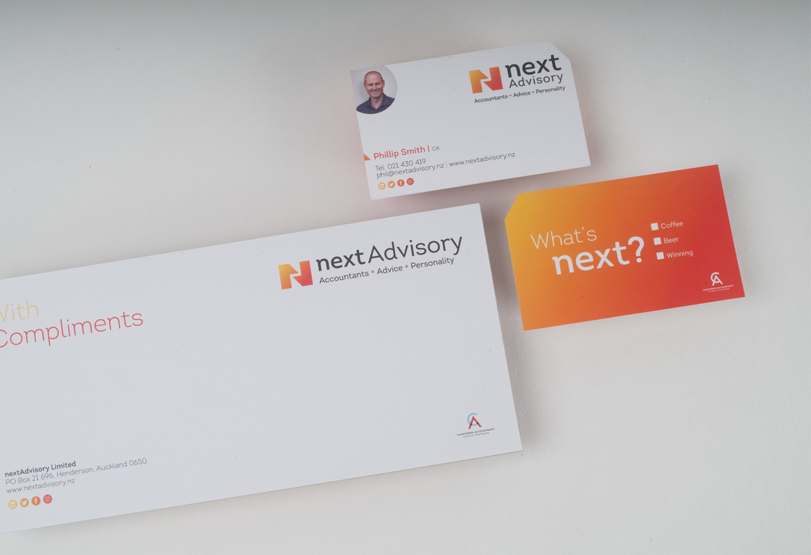 Next Advisory is a new breed of accounting and business development experts. They are high energy, genuine kiwi blokes who use the latest technology and business practices to help their clients reach their goals. They also happen to have personality which shows through in everything they do and sets them apart from most chartered accountants. This is one of their main points of difference and needed to be reflected in their branding. After vetting several creative agencies, they chose RedSpark Creative as their branding partner. We enjoyed working with them to develop a stunning brand which is delivered through their touchpoints, including logo, stationery, website, Vehicle livery and a strong social media presence.