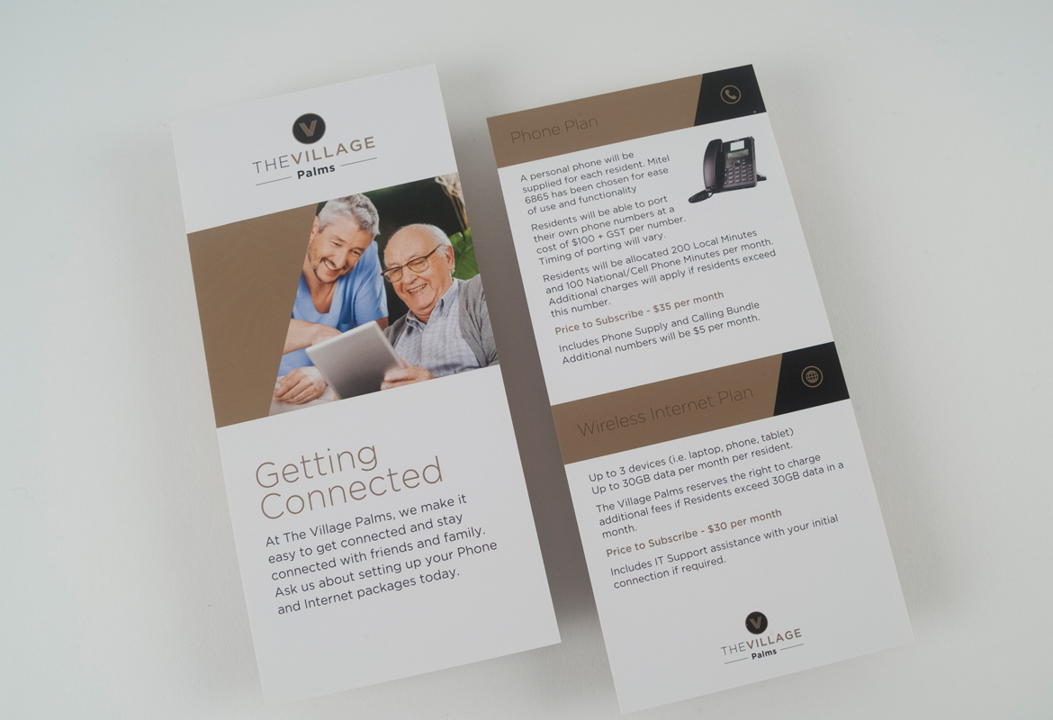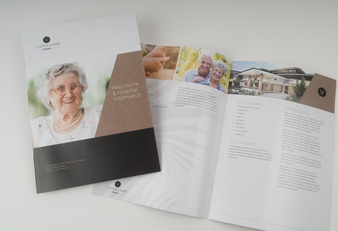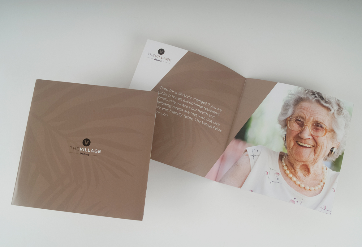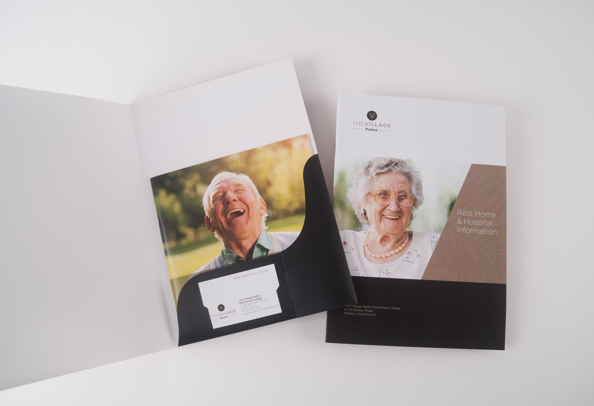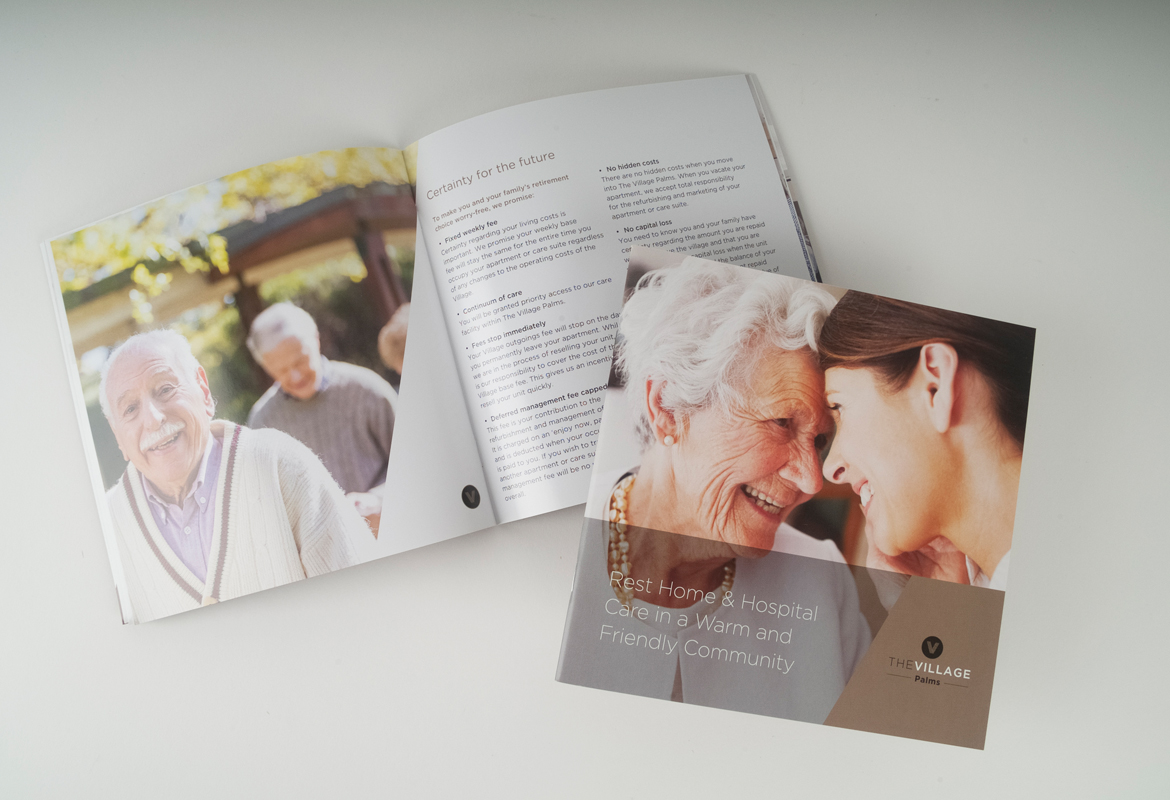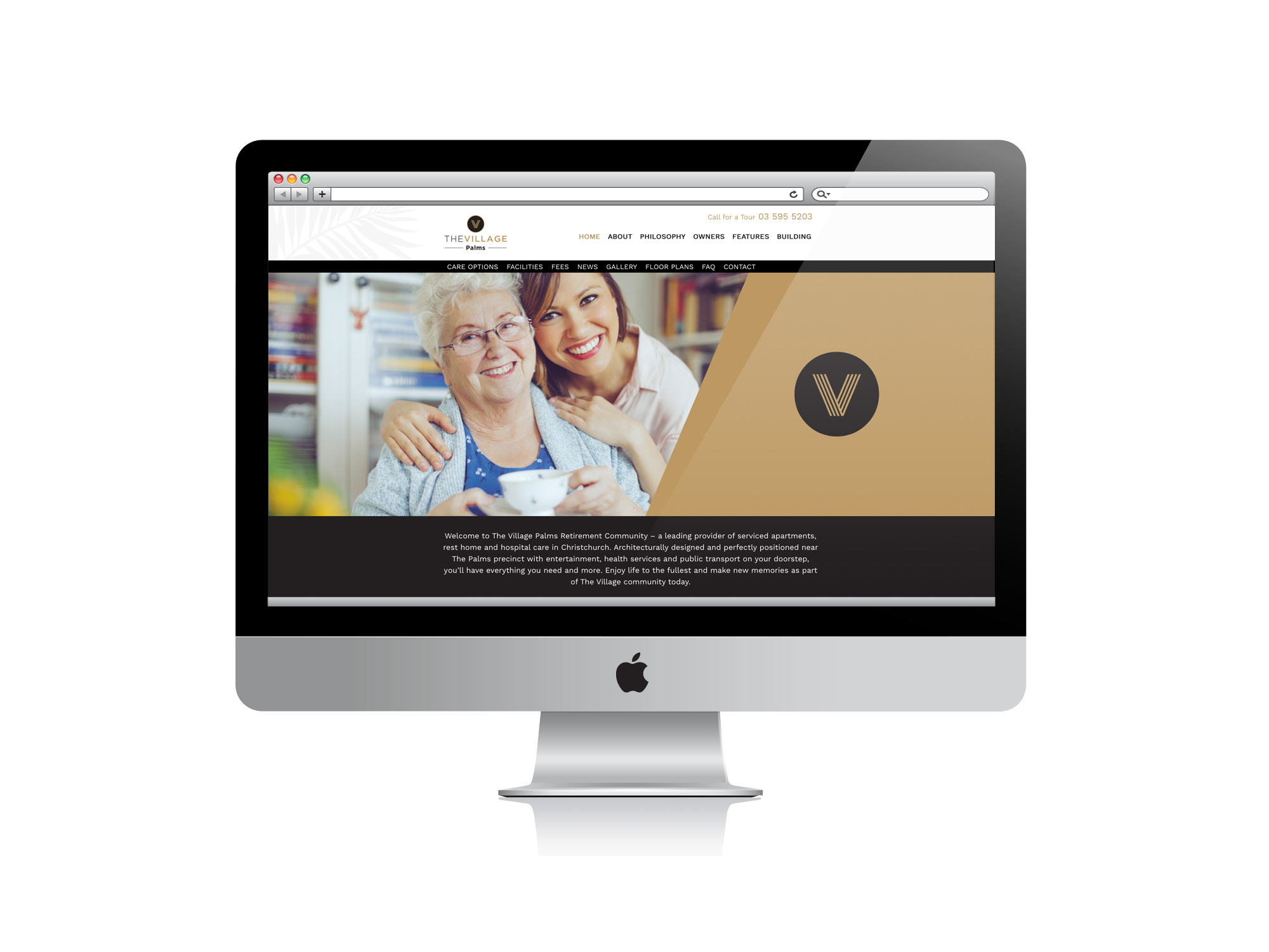 The Village Palms is a brand new luxury retirement village in Christchurch. They needed branding which reflected the high end positioning of the facility and included a full suite of marketing materials. After designing a stunning logo, we designed stationery, brochures and a website. Other items included a presentation folder, restaurant vouchers, resident information collateral, construction site hoardings, greeting cards and apparel. Just before construction was completed we designed outdoor advertising billboards to promote the facility.