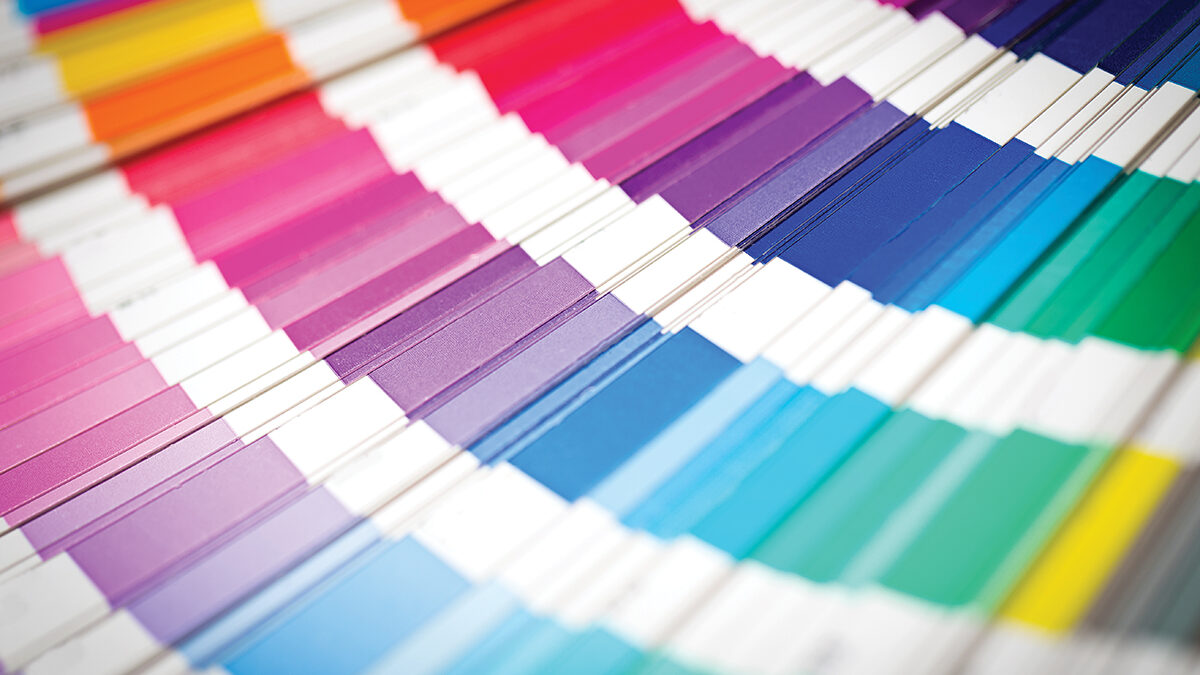 Colour swatches book. Rainbow Pantone sample colors catalogue.
